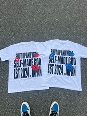 **「SHUT UP AND WEAR SELF-MADE GOD EST 2024 . JAPAN」**Tシャツ