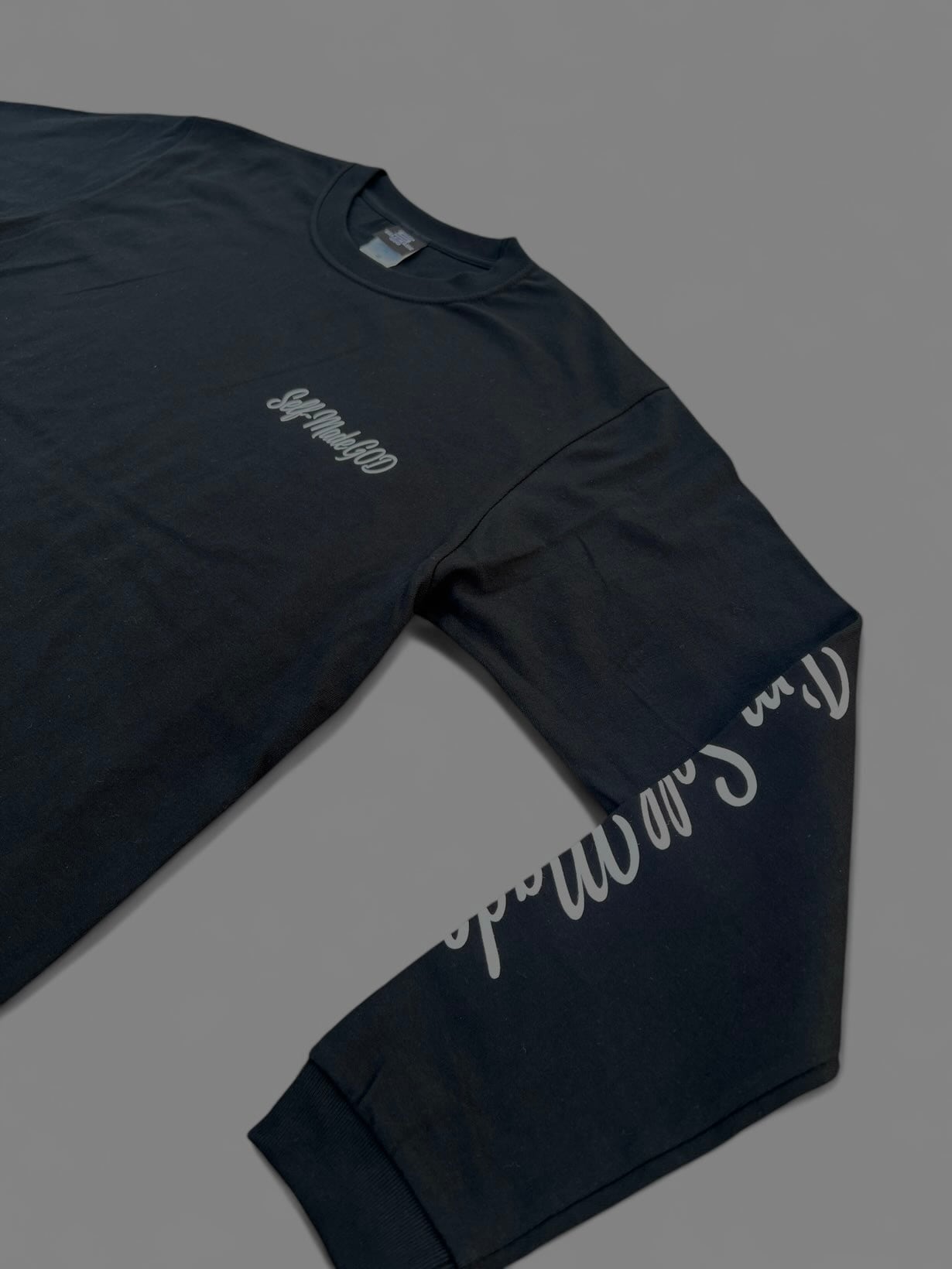 両腕には“I.M SELF-MADE”のスクリプトロゴを大胆にプリント。